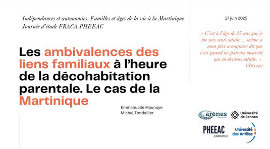 Emmanuelle Maunaye et moi-même avons eu le grand plaisir de présenter une partie des résultats de DécoDOM 🏠 lors de la journée d’étude « Indépendances et autonomies. Familles et âges de la vie » le 17 juin 2025 sur le campus de Schœlcher de Université des Antilles.