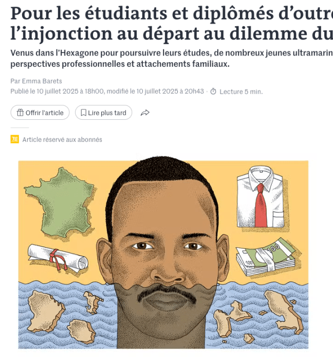 🙌 Très bel article d’Emma Barets dans Le Monde sur les réalités des expériences de mobilités-migrations des jeunes ultra-marins ✈️